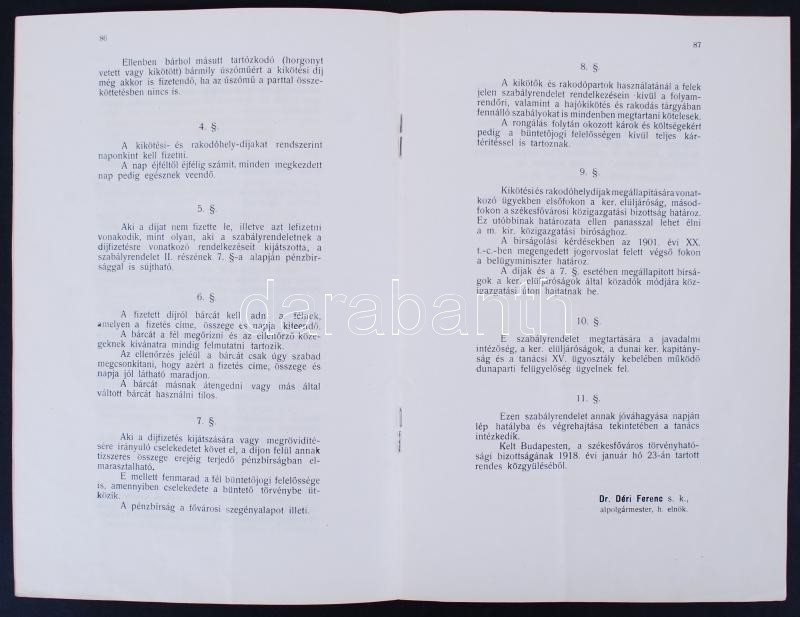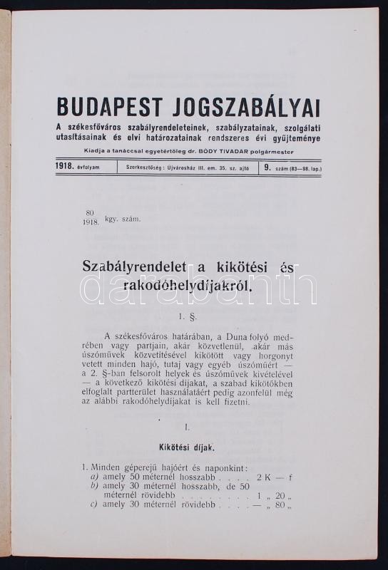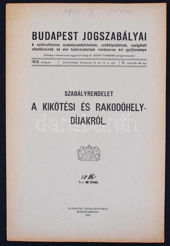 Beschreibung: 1918 Budapest jogszabályai. A kikötési és rakodóhelydíjakról. Kiadja: Dr. Bódy Tivadar polgármester