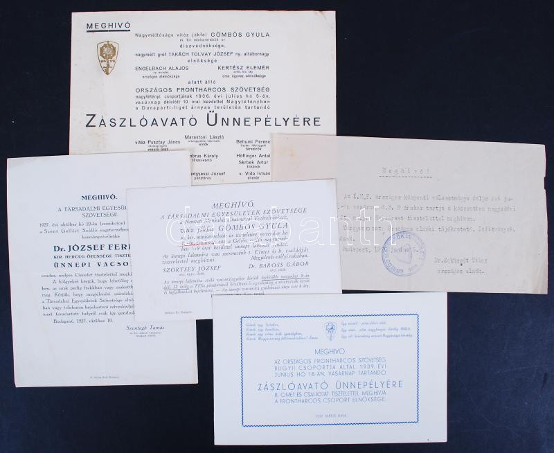 Beschreibung: 1926-1939 Klf. meghívók (zászlószentelés, ünnepi vacsora stb.), 5 db.