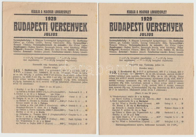 1929 Magyar Lovaregylet - Budapesti Versenyek. Turf 2 db https://www.darabanth.com/de/195-Fernauktion/195.0/Andere-Sammelgebiete/Drucksachen~800026/1929-Magyar-Lovaregylet--Budapesti-Versenyek-Turf-2-db~II657270