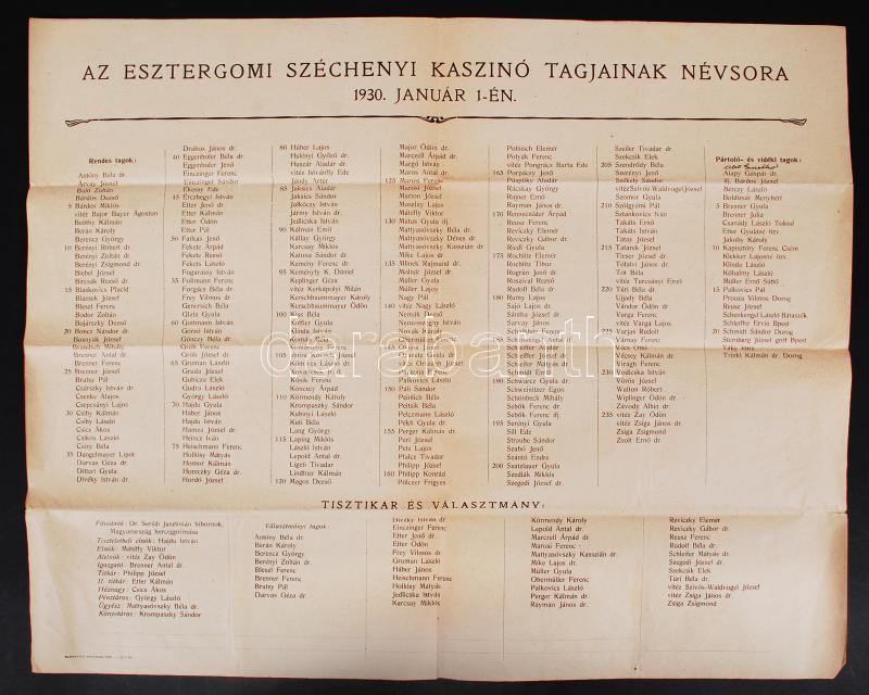 1930 Az esztergomi Szécheni Kaszinó tagjainak névsora 1930. jan. 1-én https://www.darabanth.com/de/195-Fernauktion/195.0/Andere-Sammelgebiete/Drucksachen~800026/1930-Az-esztergomi-Szecheni-Kaszino-tagjainak-nevsora-1930-jan-1-en~II745035