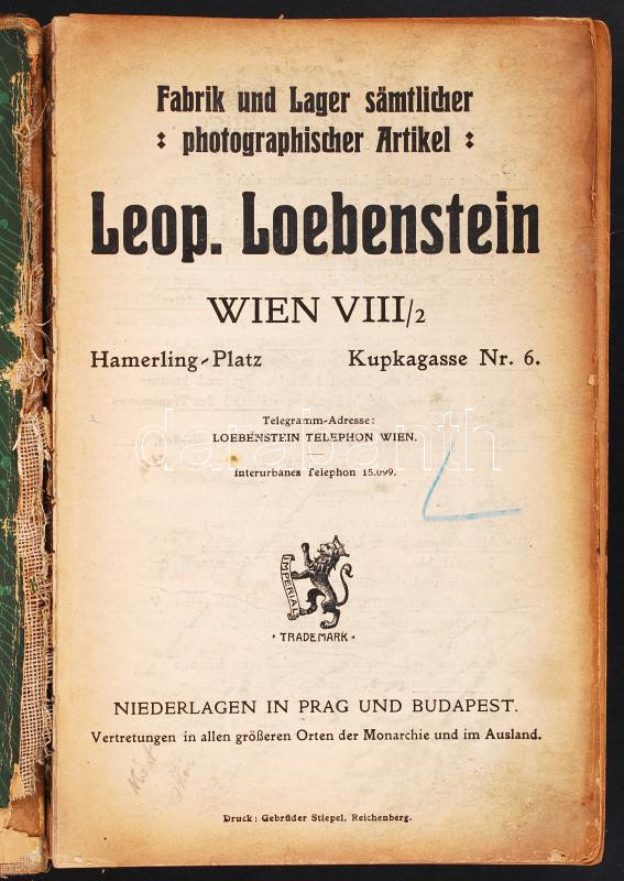 Leop. Loebenstein fényképeszeti cikkek, kamerák képes árjegyzéke. (gerinc hiányzik, néhány lap kijár) / Picture catalogue of photographic items and cameras (damaged binding) 678p.