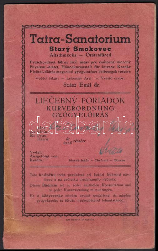 cca 1920 Tátra szanatórium gógyelőírás könyv / Tatra Sanatorium bookle... https://www.darabanth.com/de/195-Fernauktion/195.0/Andere-Sammelgebiete/Drucksachen~800026/cca-1920-Tatra-szanatorium-gogyeloiras-konyv-Tatra-Sanatorium-booklet-for-guests-18p~II746671