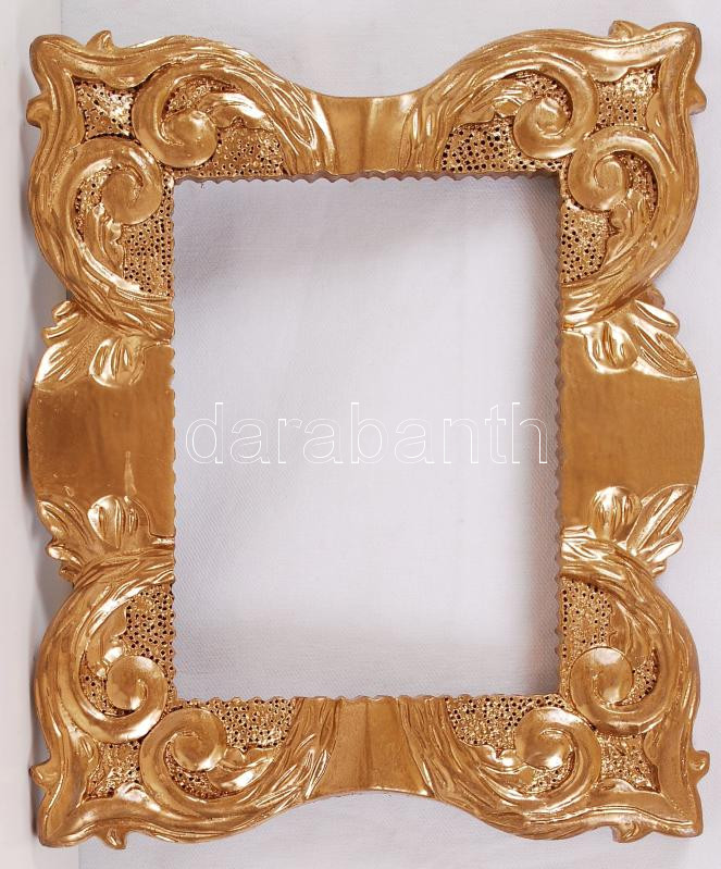 Beschreibung: Aranyozott fakeret, apró kopással, belső: 11,5x16cm, teljes méret: 21x25cm /