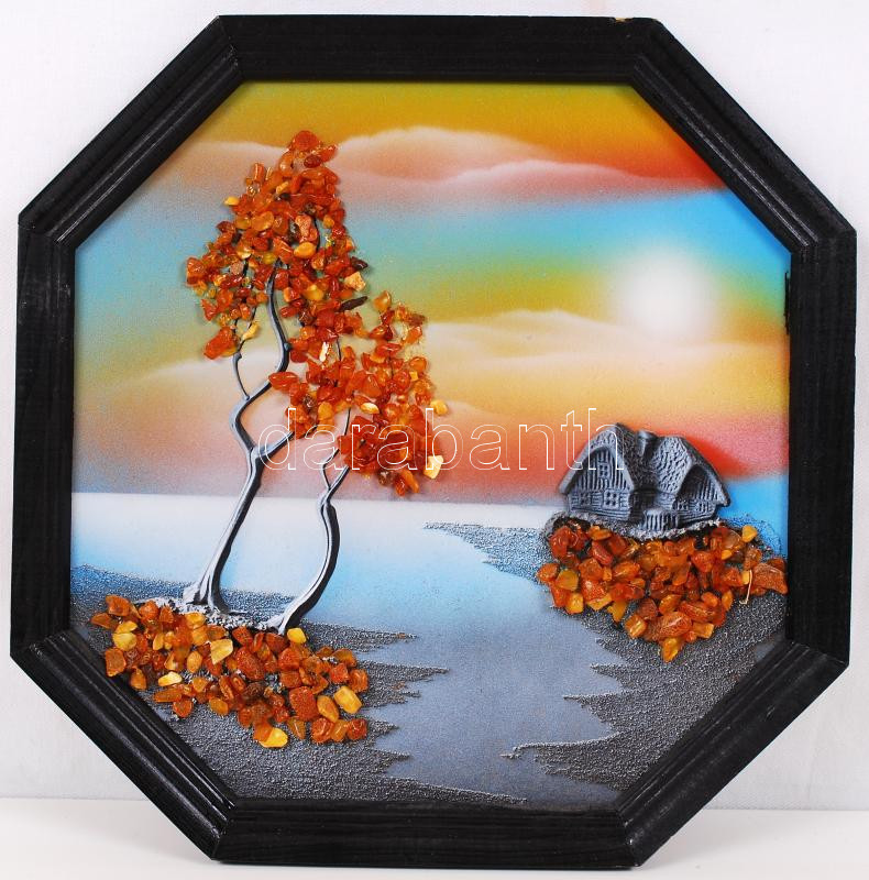 Beschreibung: Borostyánnal kirakott, vegyes technikájú falikép, 26x26cm