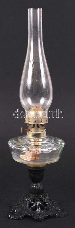 Petróleumlámpa, öntöttvas talapzattal, üveg, 47 cm https://www.darabanth.com/de/195-Fernauktion/195.0/Andere-Sammelgebiete/Flohmarkt~800011/Petroleumlampa-ontottvas-talapzattal-uveg-47-cm~II748980