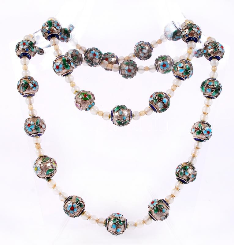 Rekeszzománc berakásos nyaklánc, virág díszítéssel, h:76 cm https://www.darabanth.com/de/195-Fernauktion/195.0/Andere-Sammelgebiete/Flohmarkt~800011/Rekeszzomanc-berakasos-nyaklanc-virag-diszitessel-h76-cm~II746988