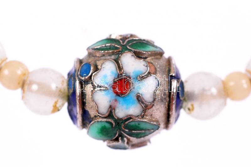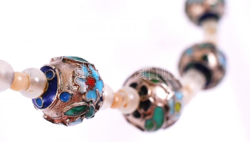 Beschreibung: Rekeszzománc berakásos nyaklánc, virág díszítéssel, h:76 cm
