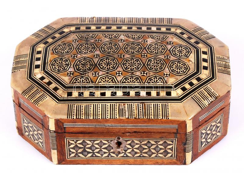 Tunéziai díszdoboz, nemes fa, gyöngyház berakással, apró hibákkal, kul... https://www.darabanth.com/de/195-Fernauktion/195.0/Andere-Sammelgebiete/Flohmarkt~800011/Tuneziai-diszdoboz-nemes-fa-gyongyhaz-berakassal-apro-hibakkal-kulcs-nelkul-21C39714-cm~II743913
