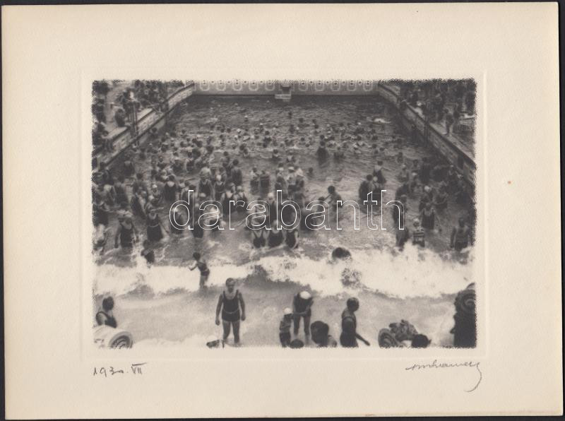 Beschreibung: 1930 Orphanidesz János (1876-1939): Hullámfürdő. Vintage fotó, művészfólián keresztül másolva, aláírt, 16x11cm/24x18cm