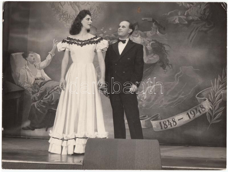 Beschreibung: 1948 Réti Katalin a színpadon, az 1848-as szabadságharc emlékére rendezett előadáson, 18x24cm