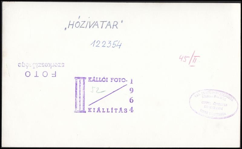 1964 Hózivatar című fotóművészeti alkotás, kiállítási és szerkesztőség... https://www.darabanth.com/de/195-Fernauktion/195.0/Andere-Sammelgebiete/Foto~800017/1964-Hozivatar-cimu-fotomuveszeti-alkotas-kiallitasi-es-szerkesztosegi-pecsettel-fel~II749979