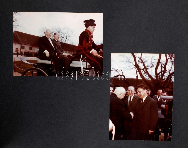 Beschreibung: 1964: Hruscsov és Kádár János Bábolnán – 24 db kfl méretű fényképet tartalmazó fotóalbum