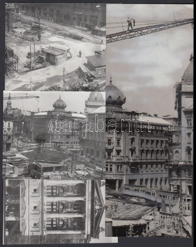Beschreibung: 1966 Budapesti Blaha Lujza tér átépítése 6 db kfl méretű városfotó, egyik foltos