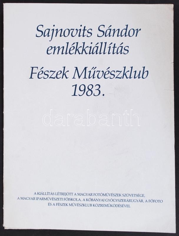1983 Sajnovits Sándor emlékkiállításának katalógusa (mappa formátum): 3db, kfl méretű, eredeti fotóval és egy, az alkotó által illusztrált képeslappal, valamint meghívóval és életrajzzal, a mappa mérete 24x18cm
