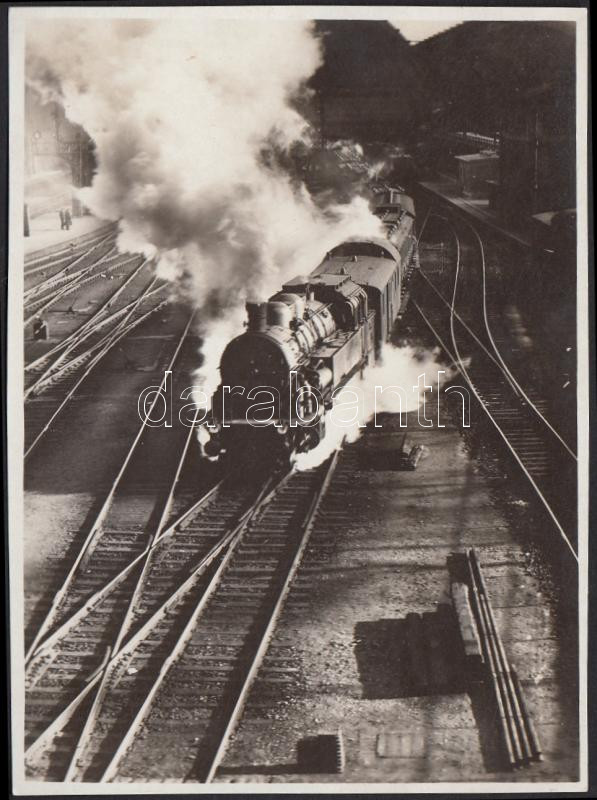 Beschreibung: cca 1930-1940 A modern magyar fényképészek egyik ismeretlen alkotójának felvétele egy pályaudvarról, jelzés nélkül, 10x7cm