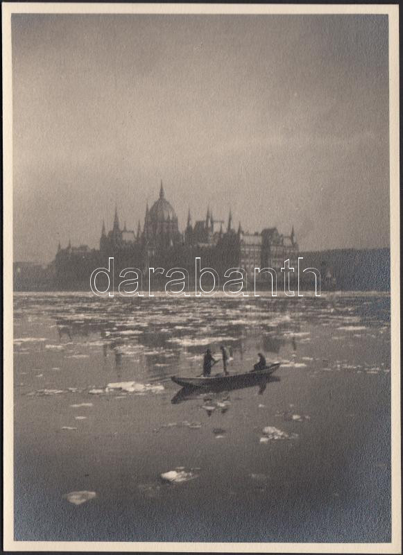 Beschreibung: cca 1930-1940 Dunai halászok az Országház előtt, 17x12cm