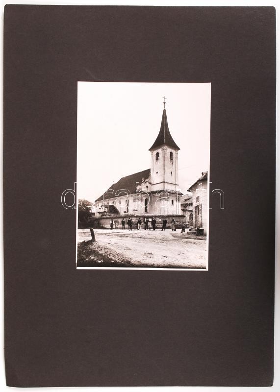 Beschreibung: cca 1930 Bácsfalu, templom, kartonra ragasztva, 17x12/35x25cm