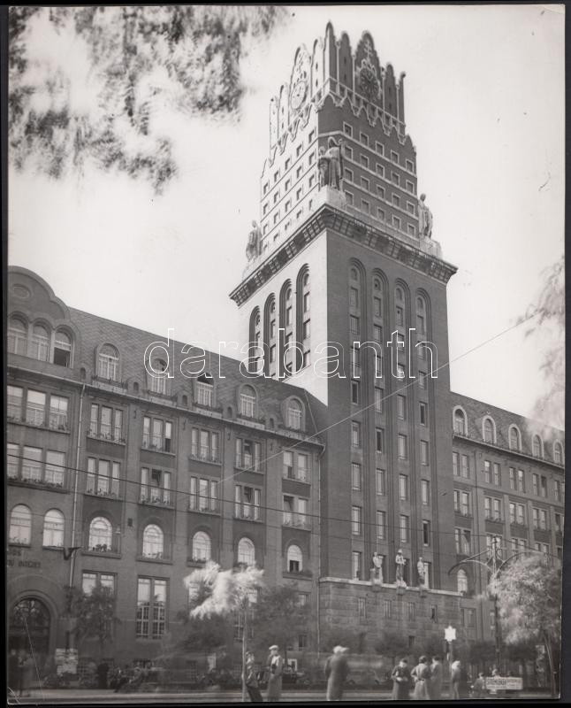 cca 1935-1943 Vadas Ernő (1899-1962): Az OTI székháza. Vintage fotó, hátoldalán pecséttel, aláírással jelzett, a Hungária Magazinban publikálva, 22x17cm