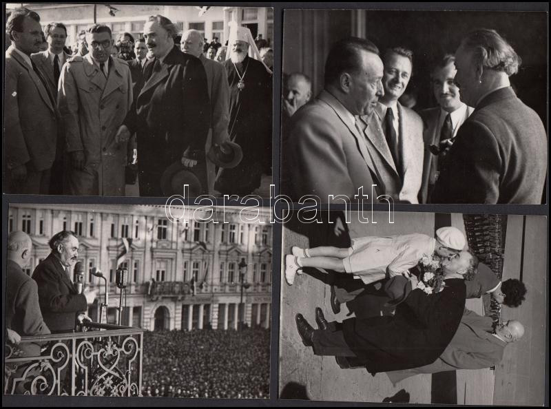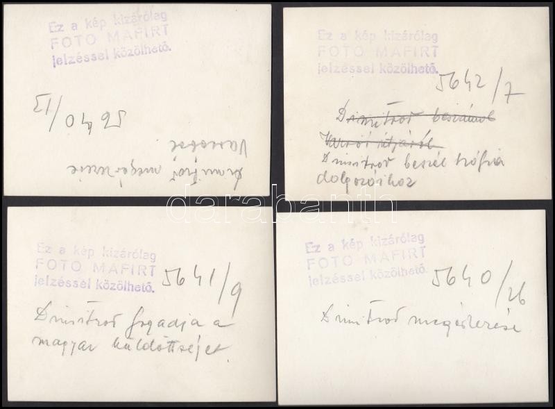 cca 1947-1948 Georgi Dimitrov bolgár miniszterelnök, pártfőtitkár Budapesten, a MAFIRT 4db, pecsételt, feliratozott felvétele /