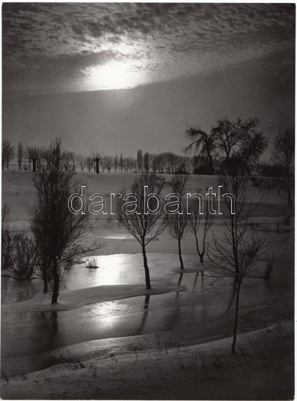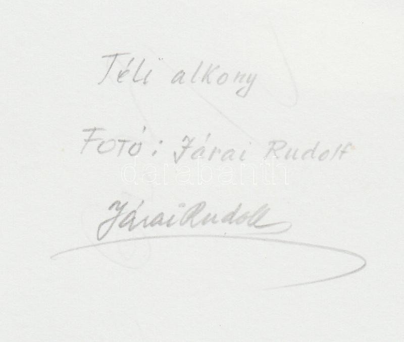 Beschreibung: cca 1950-1960 Járai Rudolf (1913-1993): Téli alkony. Vintage fotó, hátoldalán feliratozott, aláírt, 24x18cm