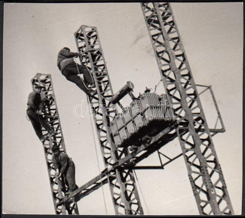 cca 1950 Ismeretlen szerző: Transzformátorszerelők. Vintage fotó, 8x7c... https://www.darabanth.com/de/195-Fernauktion/195.0/Andere-Sammelgebiete/Foto~800017/cca-1950-Ismeretlen-szerzo-Transzformatorszerelok-Vintage-foto-8x7cm~II748076