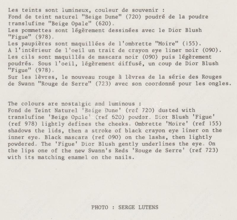 cca 1980-1990 Serge Lutens 2 modern divatfotója, feliratozva, 24x15 cm https://www.darabanth.com/de/195-Fernauktion/195.0/Andere-Sammelgebiete/Foto~800017/cca-1980-1990-Serge-Lutens-2-modern-divatfotoja-feliratozva-24x15-cm~II750630