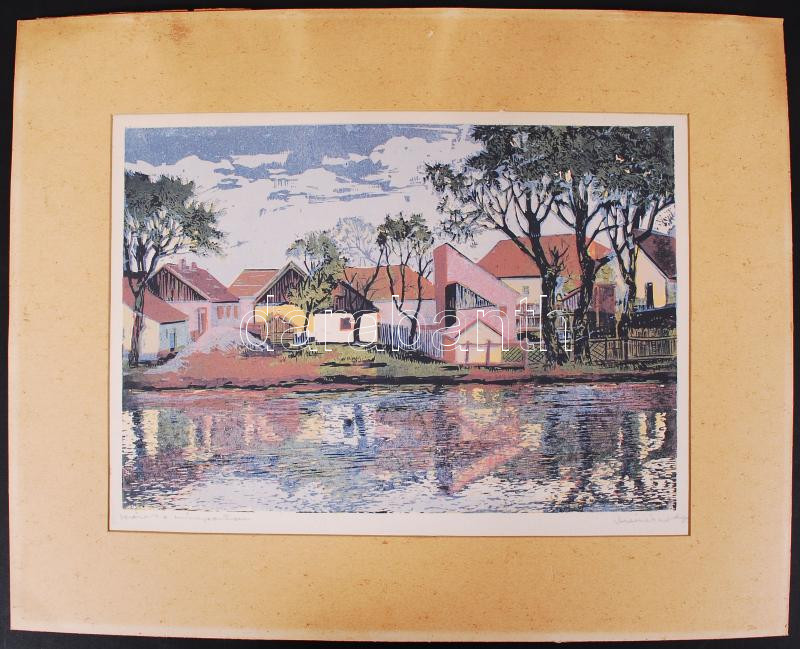 Mészáros Imre (1947-): Házak a vízparton. Színezett linó, papír, jelze... https://www.darabanth.com/de/195-Fernauktion/195.0/Andere-Sammelgebiete/Gemalde-und-Grafiken~800001/Meszaros-Imre-1947-Hazak-a-vizparton-Szinezett-lino-papir-jelzett-24C39734-cm~II744483