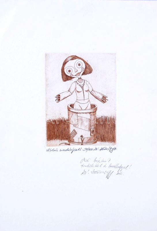 Beschreibung: Olvashatatlan jelzéssel: Abház madárijesztő Rézkarc, sorszámozott, jelzett 37/100. 10x13 cm lapméret 21x30 cm