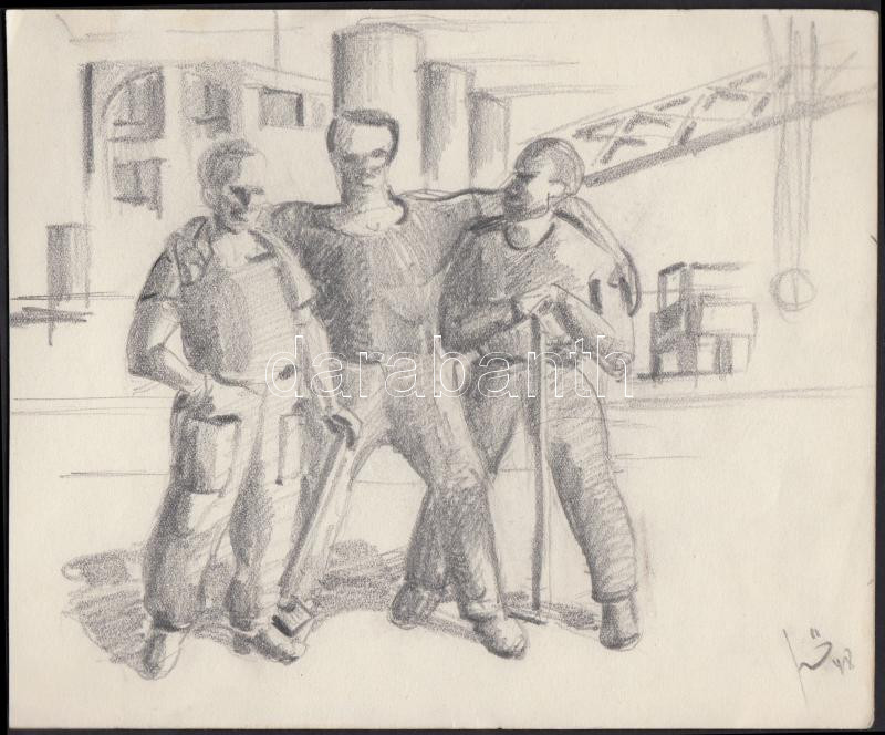 Szőnyi Jenő (1902-?): Munkások a gyár előtt. Ceruza, papír, jelzett, 1... https://www.darabanth.com/de/195-Fernauktion/195.0/Andere-Sammelgebiete/Gemalde-und-Grafiken~800001/Szonyi-Jeno-1902-Munkasok-a-gyar-elott-Ceruza-papir-jelzett-16C39720-cm~II746312