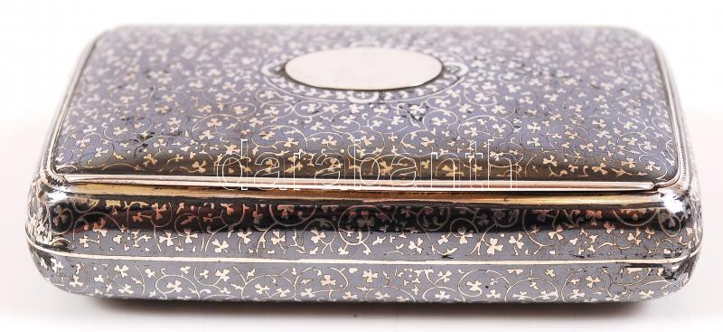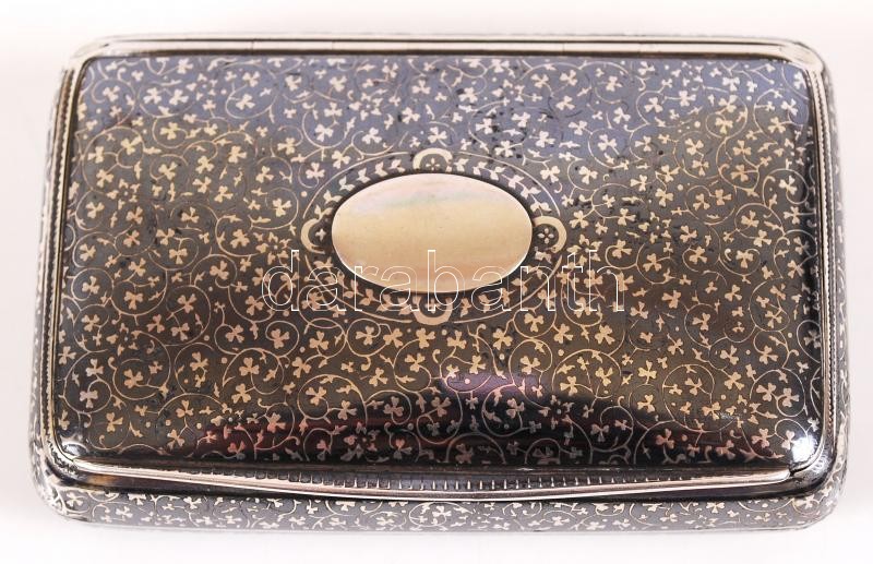 Silver (900/1000 fineness) tobacco box with gold plating inside and niello decoration on the outside, by Austro-Hungarian Viennese Markowitsch & Scheid, 9x6x2cm, 84,1gr