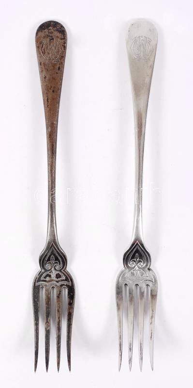 Beschreibung: 2 db díszített ezüst (Ag.) villa, jelzett, monogramos, h:19 cm, nettó:101 g