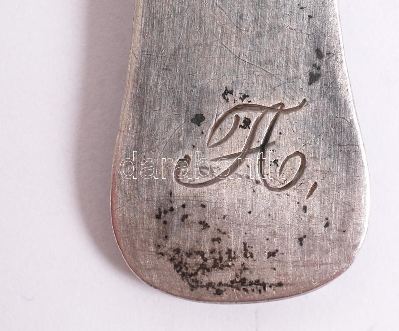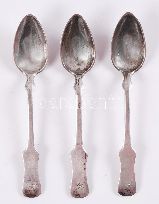 3 db ezüst (Ag.) kiskanál, jelzett, monogramos, h:15 cm, nettó:79 g. https://www.darabanth.com/de/195-Fernauktion/195.0/Andere-Sammelgebiete/Juwelen~800134/3-db-ezust-Ag-kiskanal-jelzett-monogramos-h15-cm-netto79-g~II745795