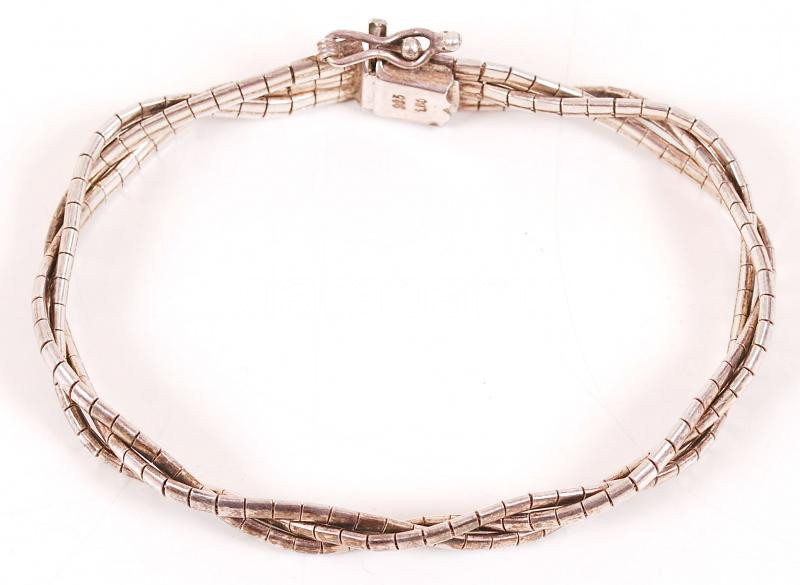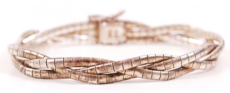Ezüst (Ag), fonott, modern karkötő biztonsági zárral, jelzettel, brutt... https://www.darabanth.com/de/195-Fernauktion/195.0/Andere-Sammelgebiete/Juwelen~800134/Ezust-Ag-fonott-modern-karkoto-biztonsagi-zarral-jelzettel-brutto-20g-hossza-19-cm--~II747606
