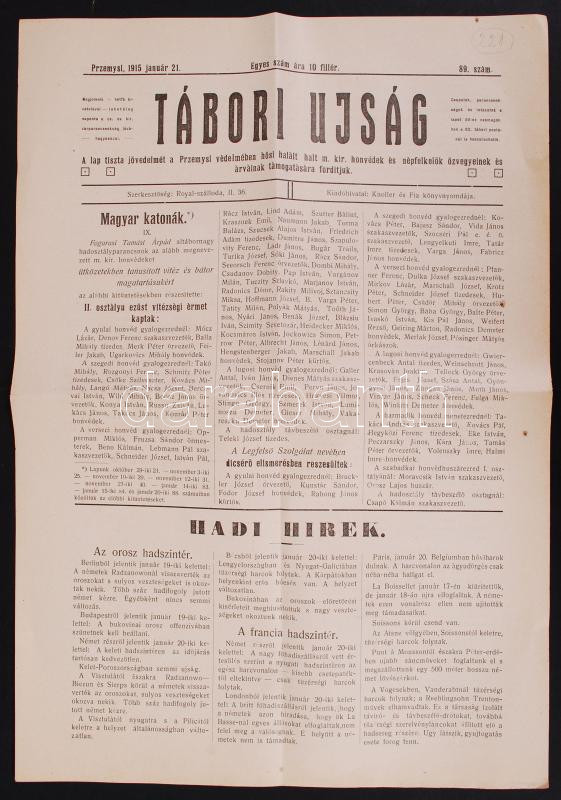 1915 Przemysl Tábori Újság, 89. szám https://www.darabanth.com/de/195-Fernauktion/195.0/Andere-Sammelgebiete/Militaria~800024/1915-Przemysl-Tabori-Ujsag-89-szam~II750632