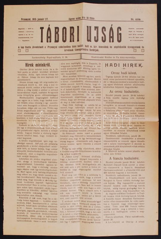 1915 Przemysl Tábori Újság, 94. szám https://www.darabanth.com/de/195-Fernauktion/195.0/Andere-Sammelgebiete/Militaria~800024/1915-Przemysl-Tabori-Ujsag-94-szam~II750633