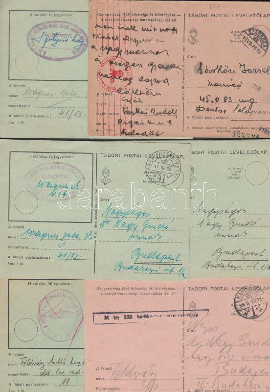 1940-1943 Tábori levelezőlap érdekes pecsétekkel, 7 db. https://www.darabanth.com/de/195-Fernauktion/195.0/Andere-Sammelgebiete/Militaria~800024/1940-1943-Tabori-levelezolap-erdekes-pecsetekkel-7-db~II750463