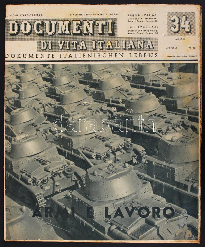 1943 Documenti di vita italiana. Dokumente italienischen Lebens. Nr. 34. Armi e lavoro. Képes háborús magazin száma az olasz fegyvergyártásról /