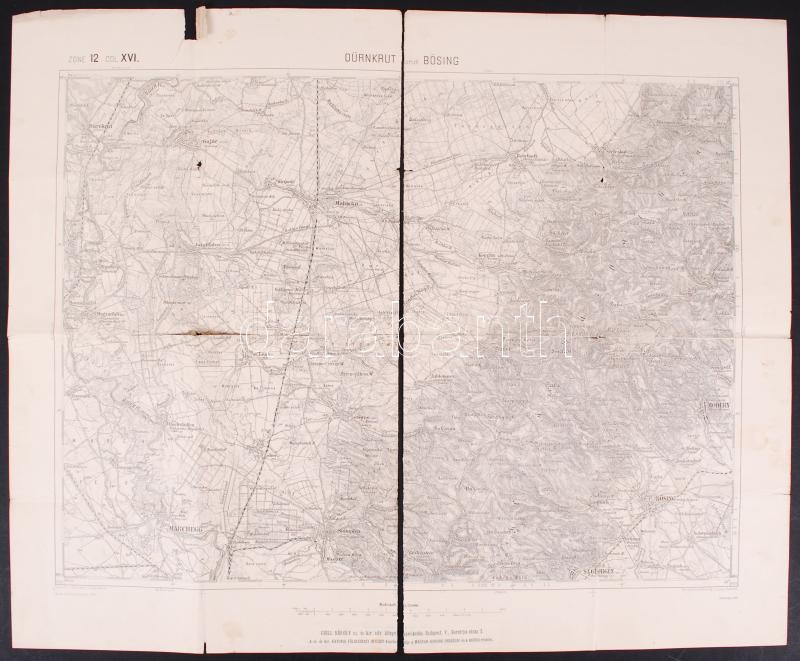 cca.1895 K. u. K. militär- geographisches Institut: Maros-Vásárhely, Dürnkrut und Bösing 2db katonai térkép. 62x43 Szakadásokkal, egyik térkép két részletben./