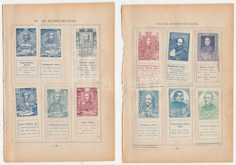 1898 Magyar arckép bélyegek 12 darab gyűjtési bélyeg, híres emberek er... https://www.darabanth.com/de/195-Fernauktion/195.0/Andere-Sammelgebiete/Paraphilatelie~800012/1898-Magyar-arckep-belyegek-12-darab-gyujtesi-belyeg-hires-emberek-eredeti-albumlapra-ragaszt~II748769