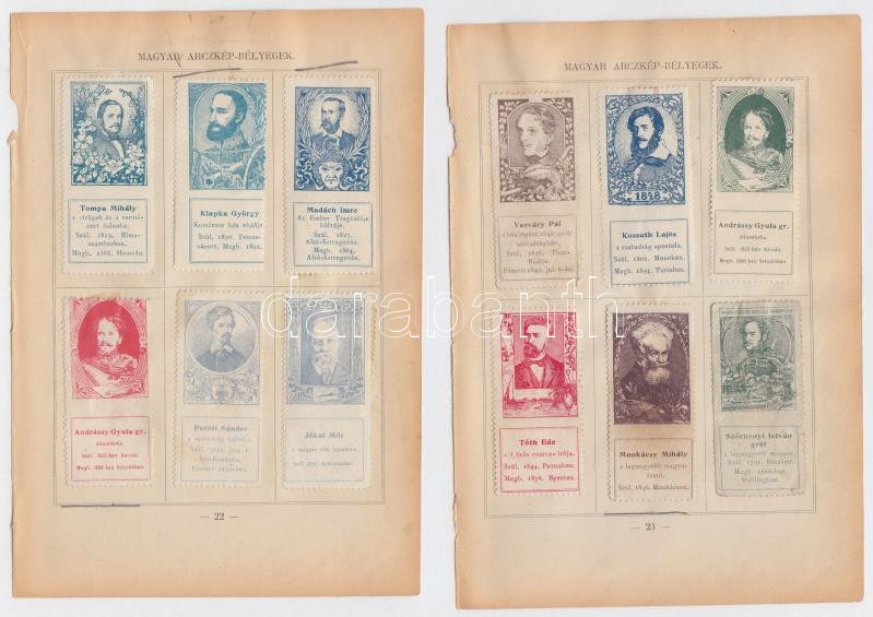 1898 Magyar arckép bélyegek 12 darab gyűjtési bélyeg, híres emberek er... https://www.darabanth.com/de/195-Fernauktion/195.0/Andere-Sammelgebiete/Paraphilatelie~800012/1898-Magyar-arckep-belyegek-12-darab-gyujtesi-belyeg-hires-emberek-eredeti-albumlapra-ragaszt~II748776