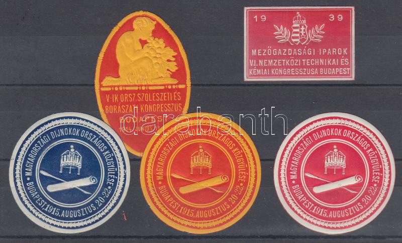 Beschreibung: 1914-1939 5 db Kongresszusi levélzáró, dombornyomással