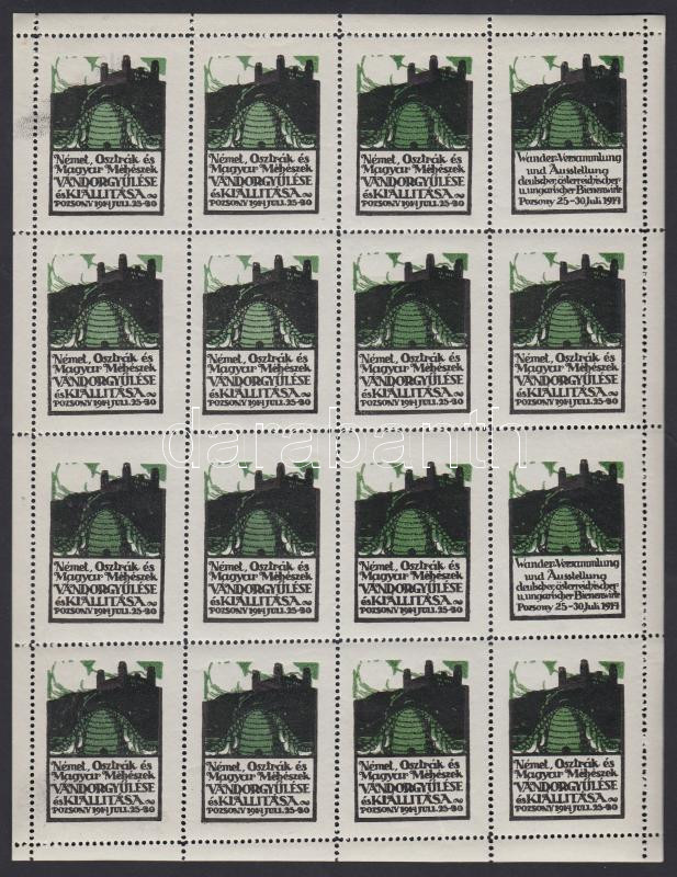 Beschreibung: 1914 Német, Osztrák és Magyar Méhészek Vándorgyűlése és Kiállítása, Pozsony, 1914. július 25-30. 4x4 kisív, zöld.