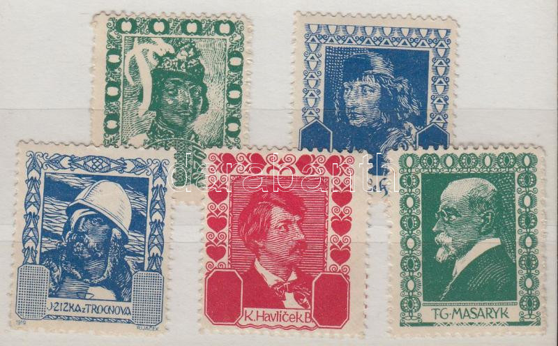 1919 Cseh nemzeti hősök 5 klf levélzáró https://www.darabanth.com/de/195-Fernauktion/195.0/Andere-Sammelgebiete/Paraphilatelie~800012/1919-Cseh-nemzeti-hosok-5-klf-levelzaro~II748288
