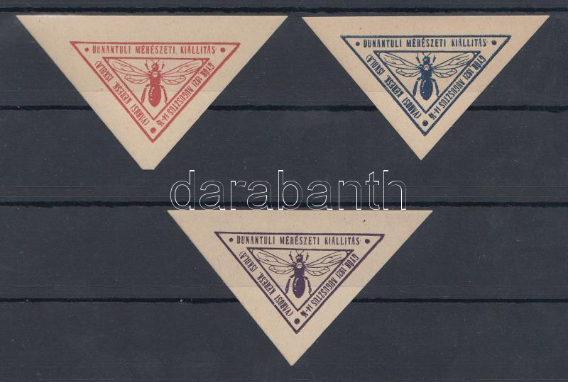 Beschreibung: 1921 Dunántúli Méhészeti Kiállítás 3 db levélzáró