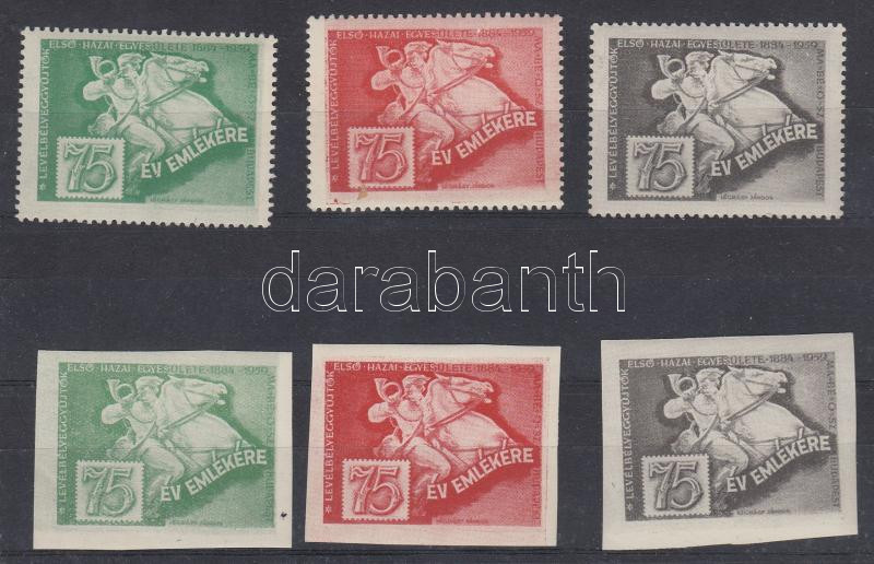 Beschreibung: 1959 LEHE 75 év emlékére fogazott + vágott sor, összesen 6 db levélzáró