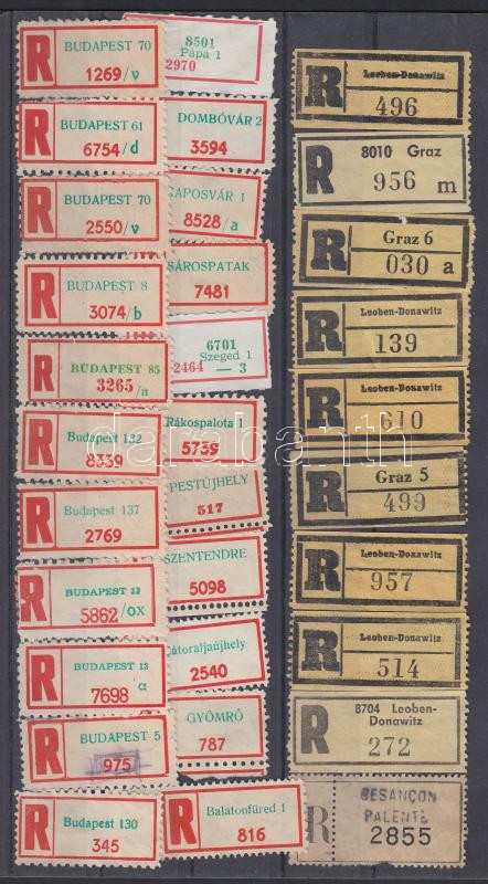 Beschreibung: 32 db magyar és külföldi "R"- ragjegy stecklapon
