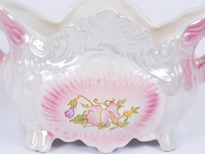 Beschreibung: Kézzel festett kiöntő hibátlan jelzés nélküli 17 cm , matricás füles tál hibátlan jelzés nélküli 12x23 cm