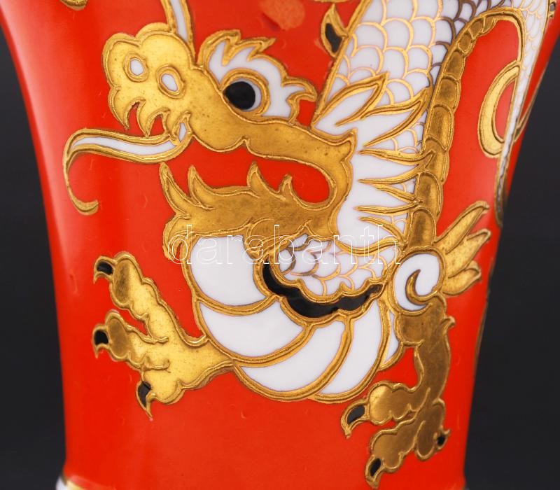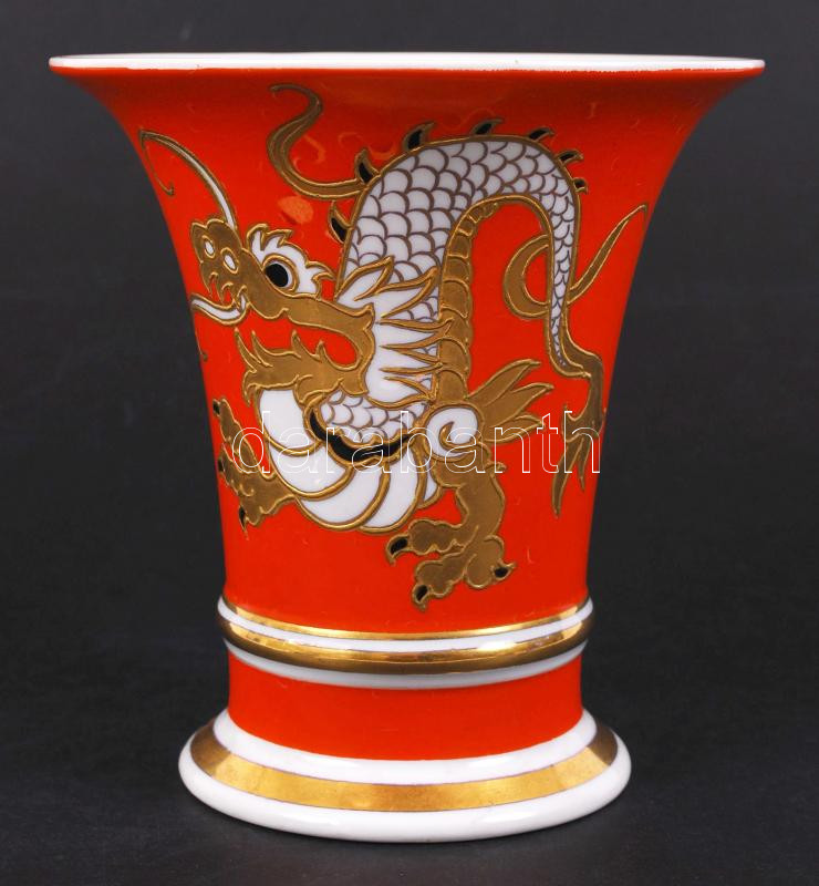 Beschreibung: Schaubach Kunst német sárkányos váza, jelzett, aranyozott, festési hibákkal, m:15 cm, d:14 cm