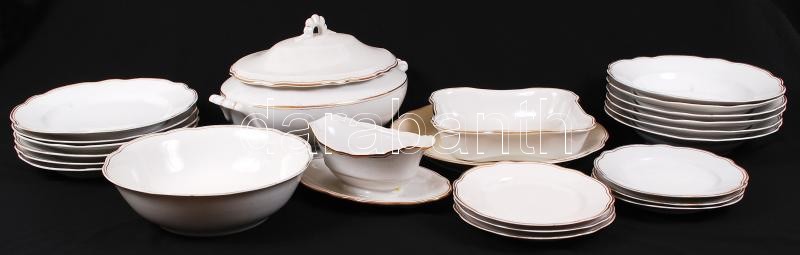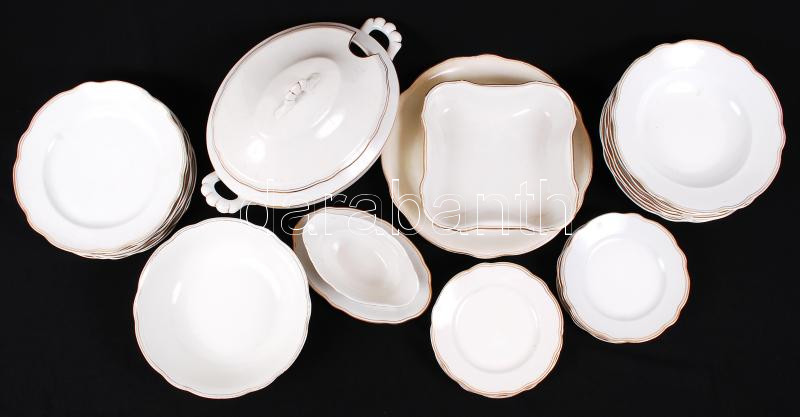 Beschreibung: Zsolnay étkészlet, jelzett, kopott aranyozással, kisebb lepattanásokkal, repedésekkel, összesen:23 db
