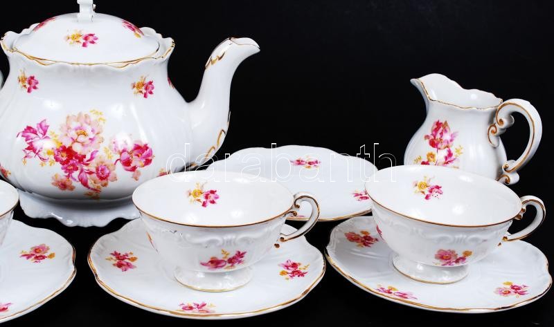 Beschreibung: Zsolnay hiányos teás készlet, jelzett (háború előtti), hibátlan, matricás
